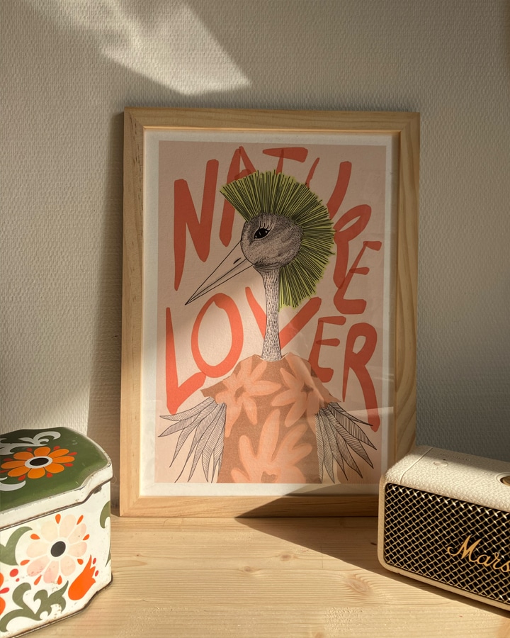 Cette affiche audacieuse et décalée avec un oiseau aux allures punk et son message pour les Nature Lover !
