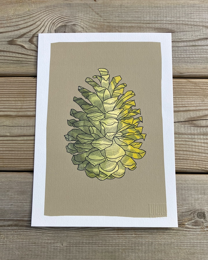 L’élégante pigne de pin. Minimaliste et graphique, cette affiche nous rappelle le parfum des pins des Landes.