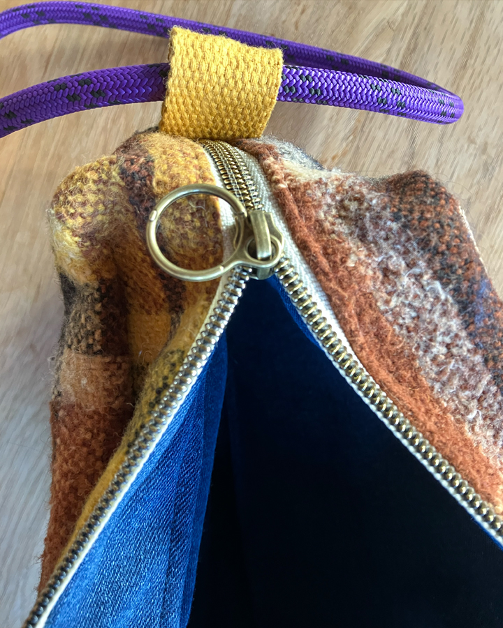 Sac bandoulière upcyclé à porter à l’épaule ou en crossbody.