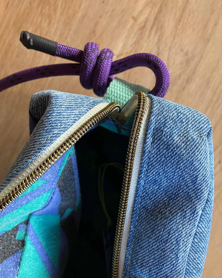 Sac bandoulière upcyclé à porter à l’épaule ou en crossbody.