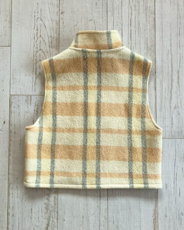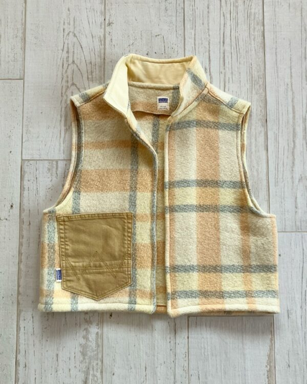 Veste sans manches 100 % upcyclée à col montant et une emmanchure large. Parfaite à superposer sur un gros pull, un sweat, une veste en jean ou même sous un manteau, elle apporte confort et style à toutes vos tenues.